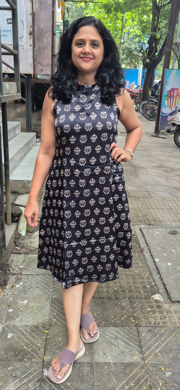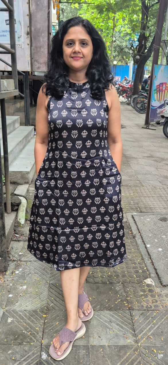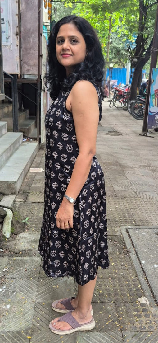 Black Mashru Silk Knee Length One Piece
