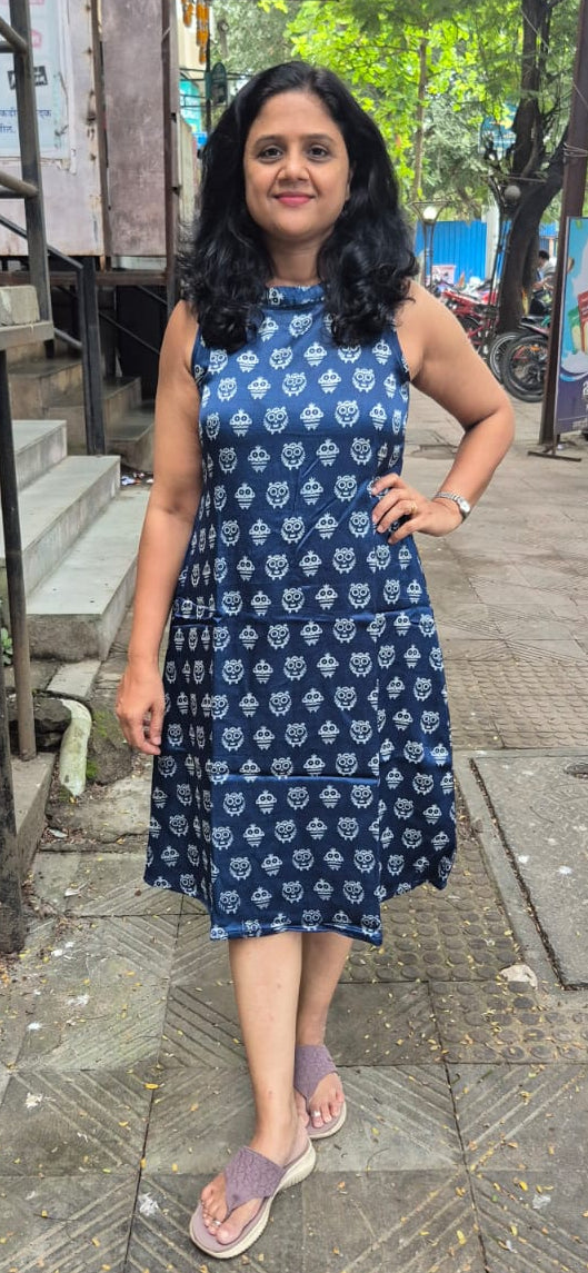 Increase quantity for Blue Mashru Silk Knee Length One Piece