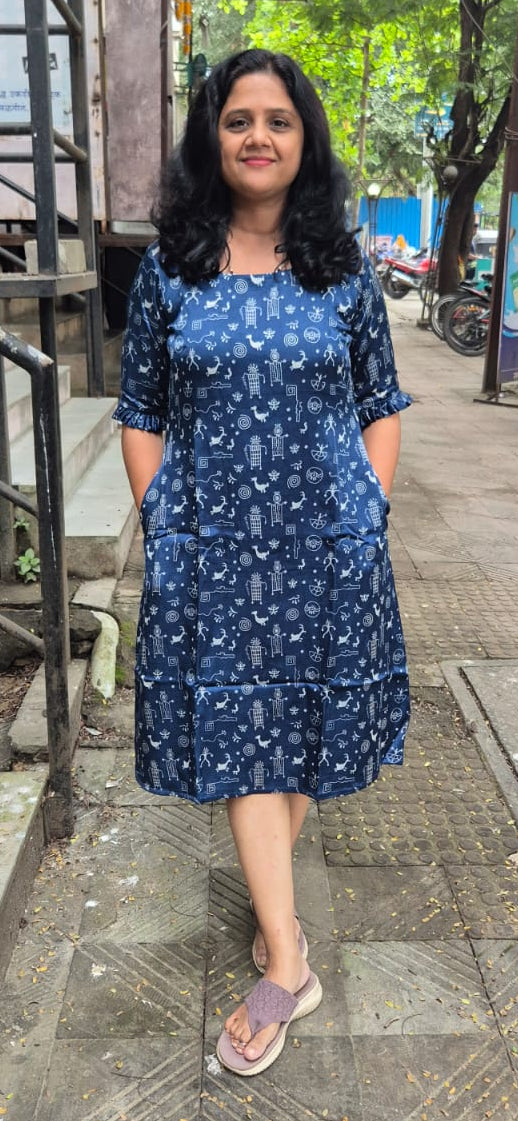 Increase quantity for Blue Mashru Silk Knee Length One Piece