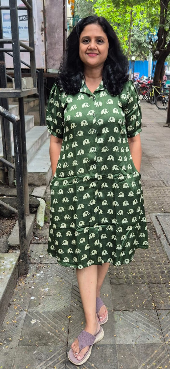 Increase quantity for Bottle Green Mashru Silk Knee Length One Piece