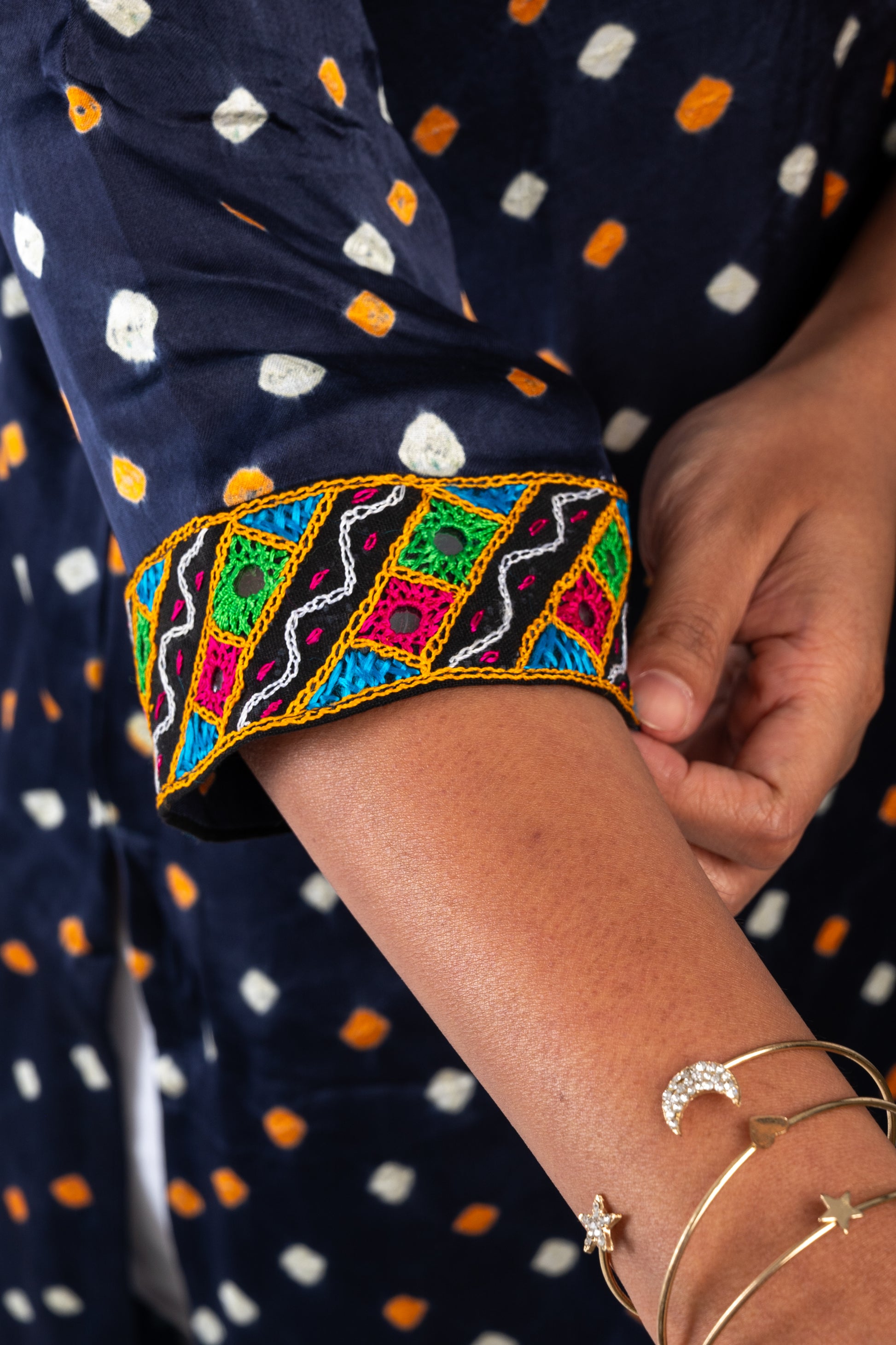 Dark Navy Blue Modal Silk Bandhani Kurta