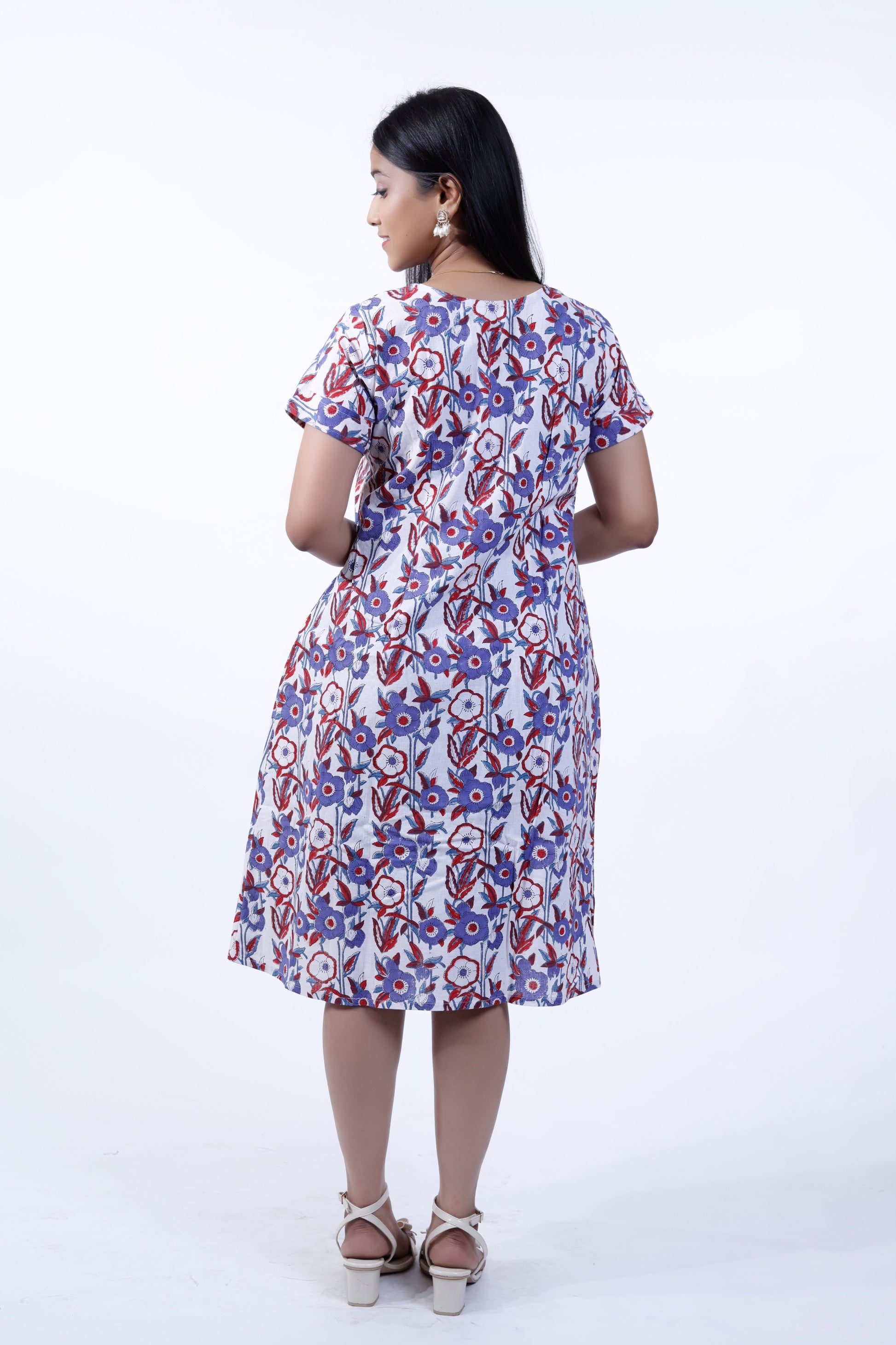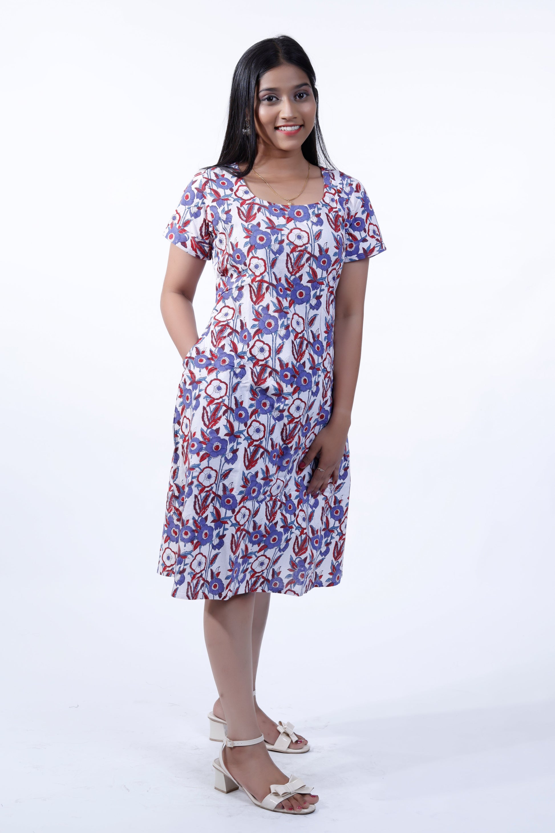 Increase quantity for Blue Block Printed Knee Length One Piece