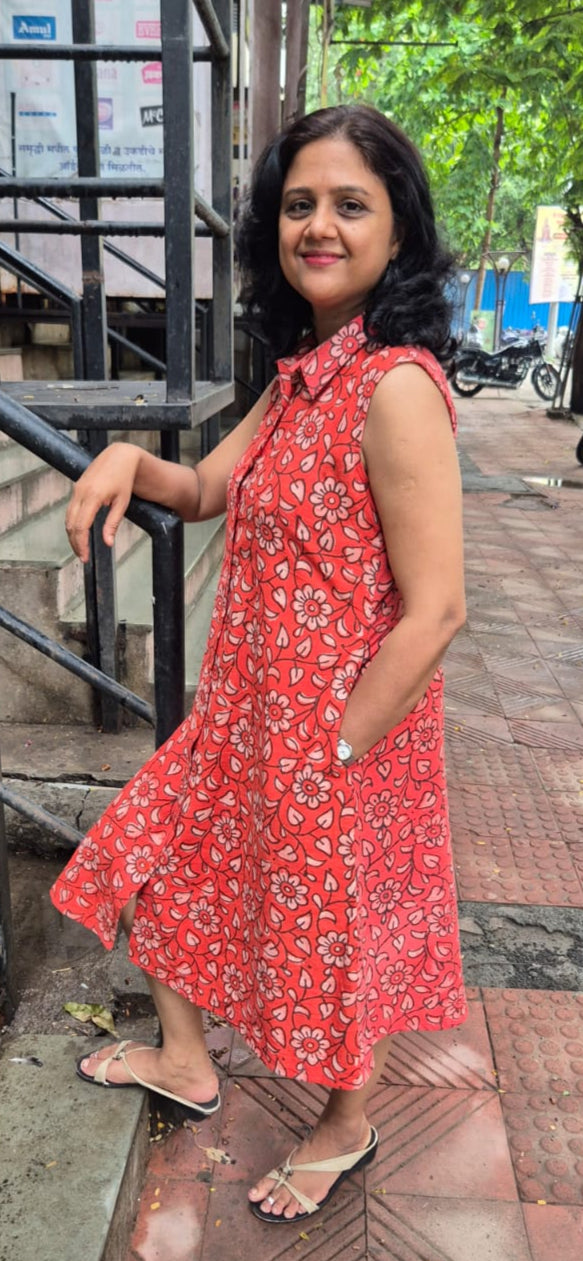 Rust Orange Premium Slub Cotton Knee Length One Piece