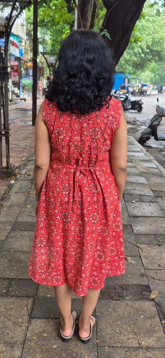 Increase quantity for Rust Orange Premium Slub Cotton Knee Length One Piece